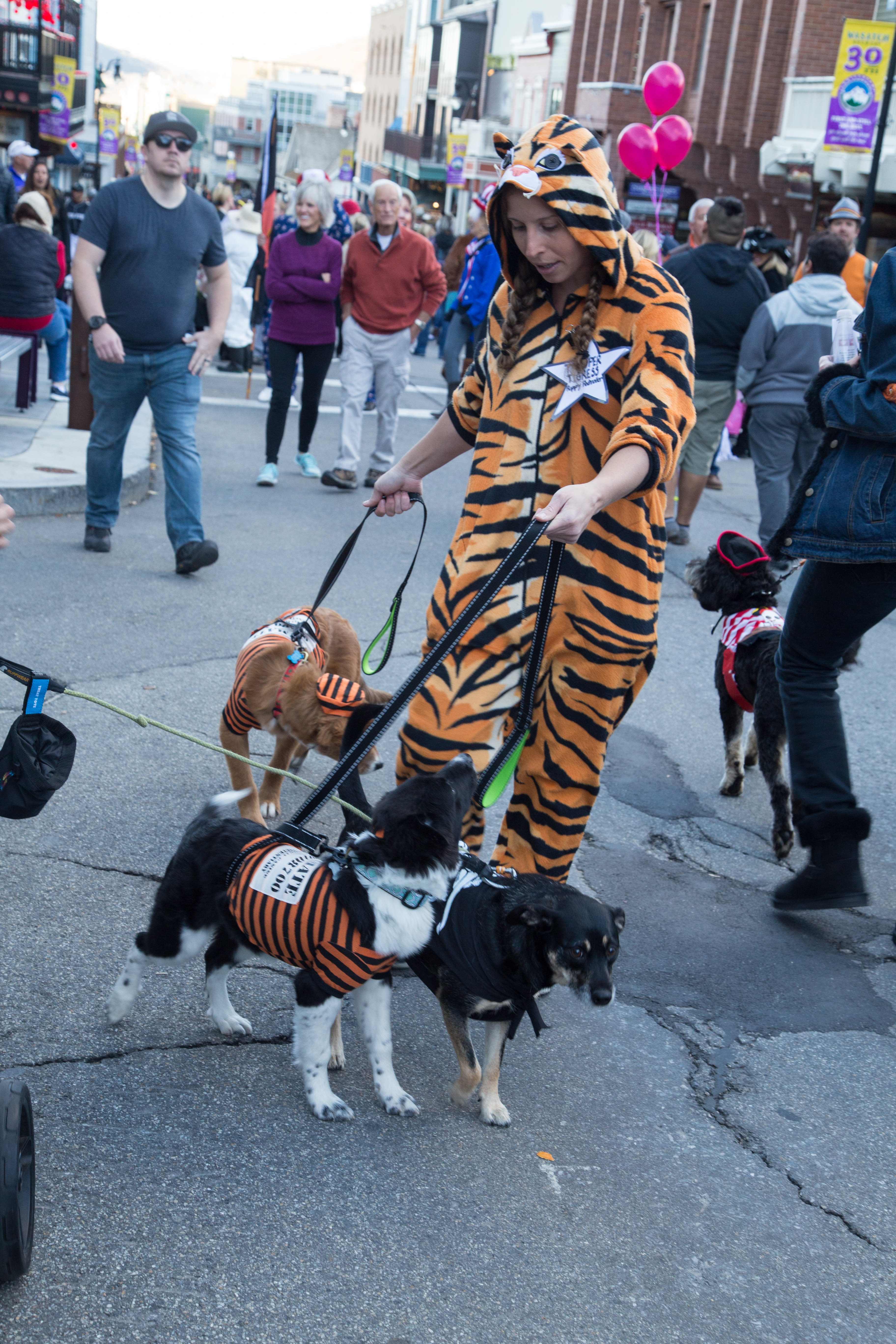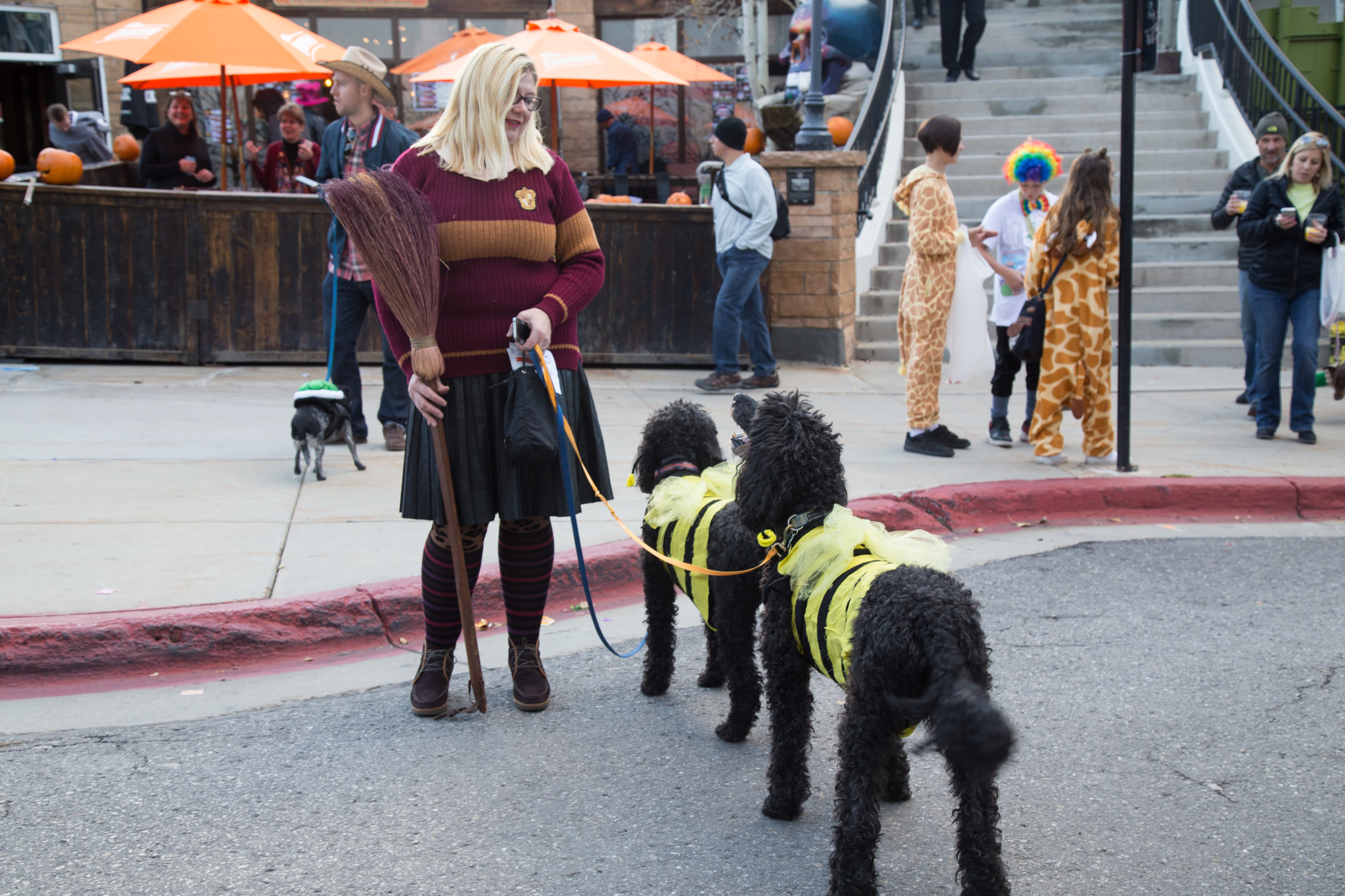 If you've ever been to Park City, you've probably figured out there are two things we absolutely love: dressing up in silly costumes and our dogs. So it makes sense that the main event of Halloween here is the annual Howl-O-Ween parade. Once again, proud doggy mommies and daddies showed off their pooches finest Halloween costumes and went for a stroll up Main Street. The streets were full of dog tacos, dinosaurs, wizards, Pikachus, Ninja Turtles, skeletons, and Yodas happily wagging their tails and causing a cacophony of cuteness--even the Poop Fairy came out to make sure our streets stayed clean! Until next Howl-O-Ween!