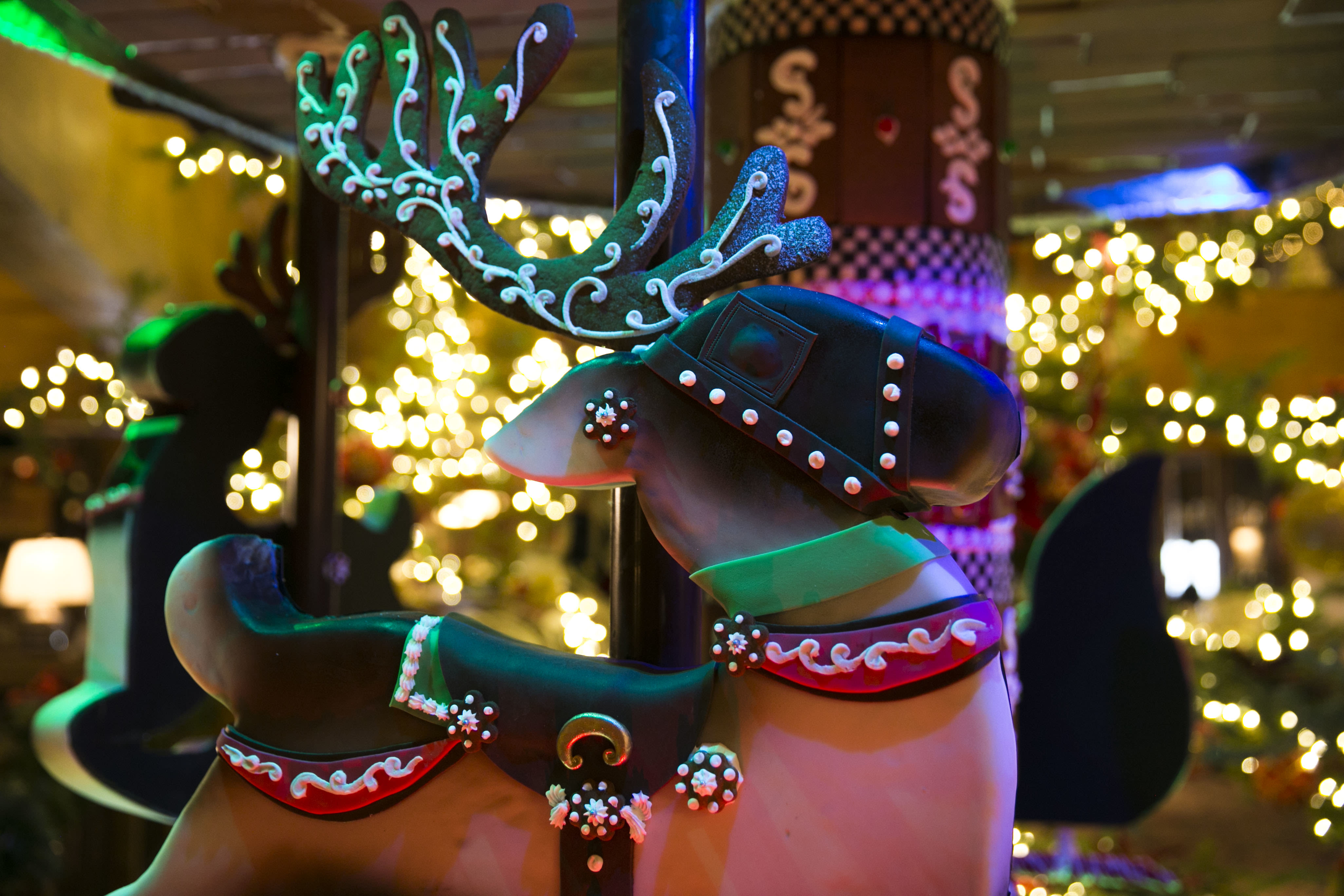 Putting together these extravagant displays is no easy task. In addition to months of planning, baking, building, and decorating requires a staff of more than ten people, with at least three working on it at a time. The entire process is overseen by Executive Pastry Chef Jeremy Garcia and Chef Zane Holmquist, VP of Food & Beverage Operations/Corporate Chef. But it's worth it. “One of the greatest perks of my job is being able to surprise and entertain guests with our desserts and displays,” Garcia says. “Creating something of this magnitude with pastries is an exciting challenge. Combined with our Christmas décor, a colorful carousel exudes a magical, wonderland feel, which is what we wanted to deliver to our guests during the holidays.”