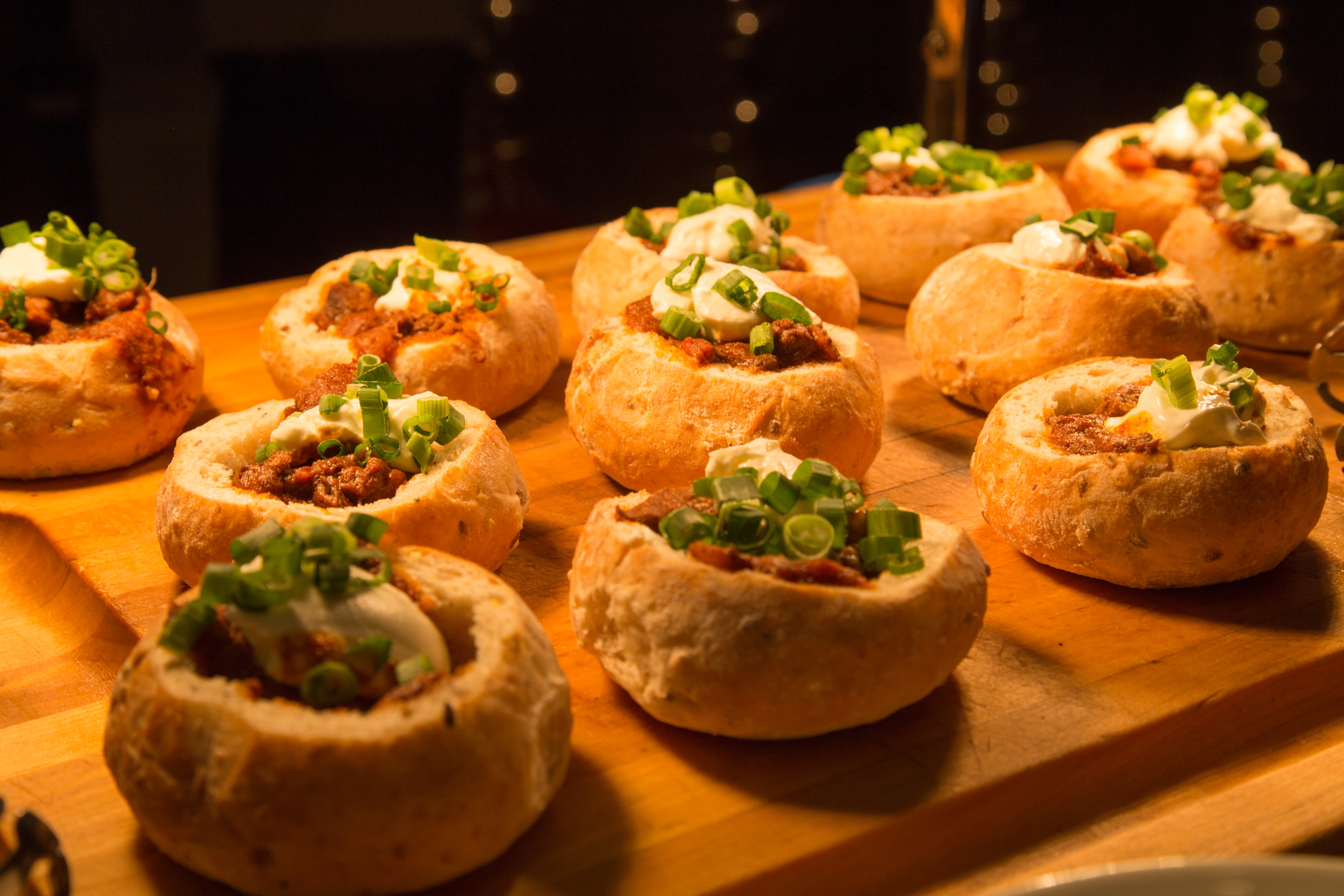 Chef Zane Holmquist, Executive Chef at the Stein, whipped up several Olympic-themed food pairings honoring Olympic hosts, including Salt Lake City. Cuisine ranged from Kimbop Korean Vegetable Rolls (PyeongChang, 2018), Raclette (Innsbruck, 1976), and Truffle Arancini (Cortini D' Ampezzo, 1956) to Oyaki Japanese Dumplings (Nagano, 1998), Steamed Pork Buns (Beijing, 2008), Mr. Eriksen's Shrimp-Stuffed Eggs (Oslo, 1952), and Veal Goulash (St. Moritz, 1948) to name a few. To commemorate Salt Lake City's 2002 Games, Holmquist whipped up the Stein's much-lauded Wild Game Chili (a big hit during the event) and Pigs in a Blanket.
