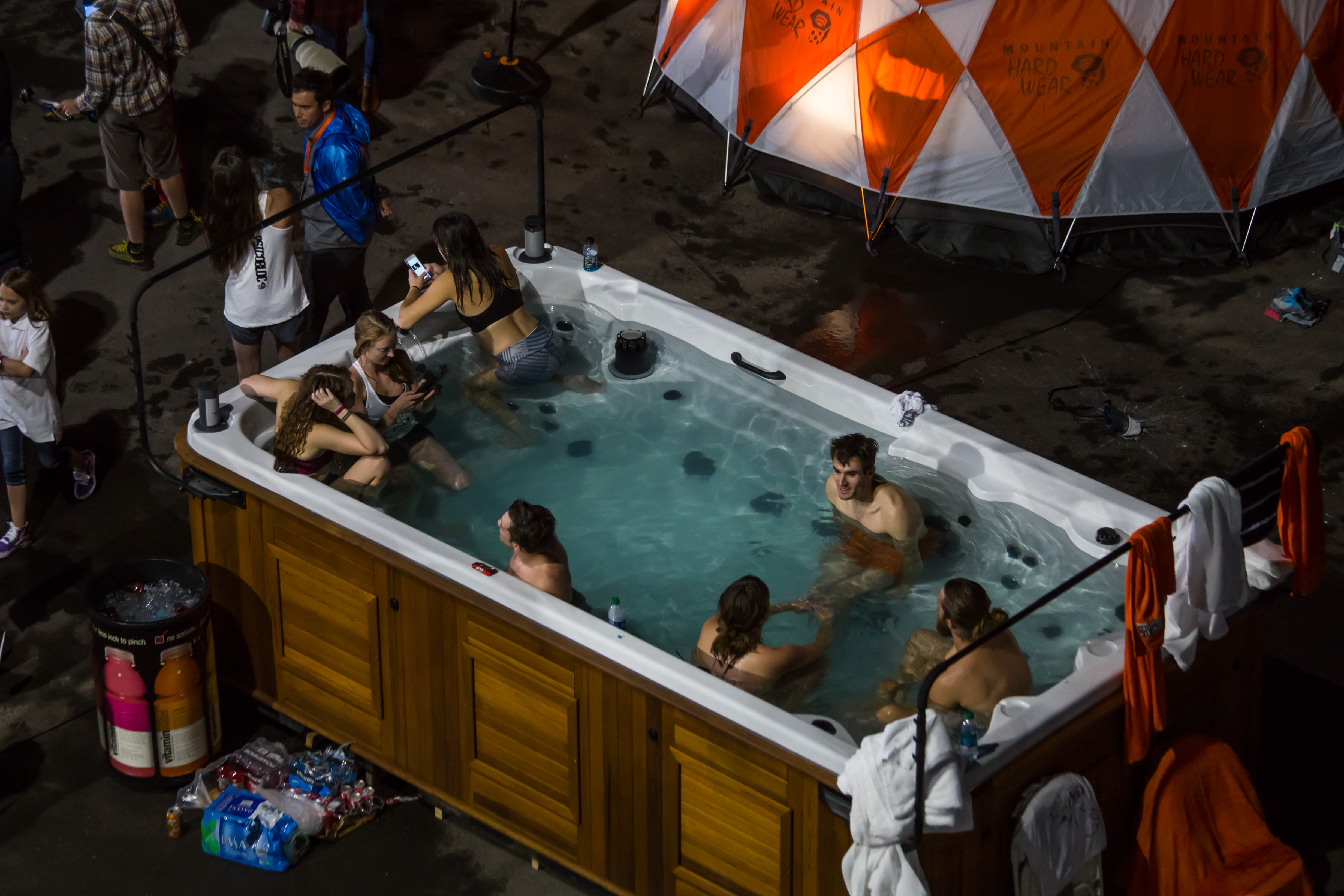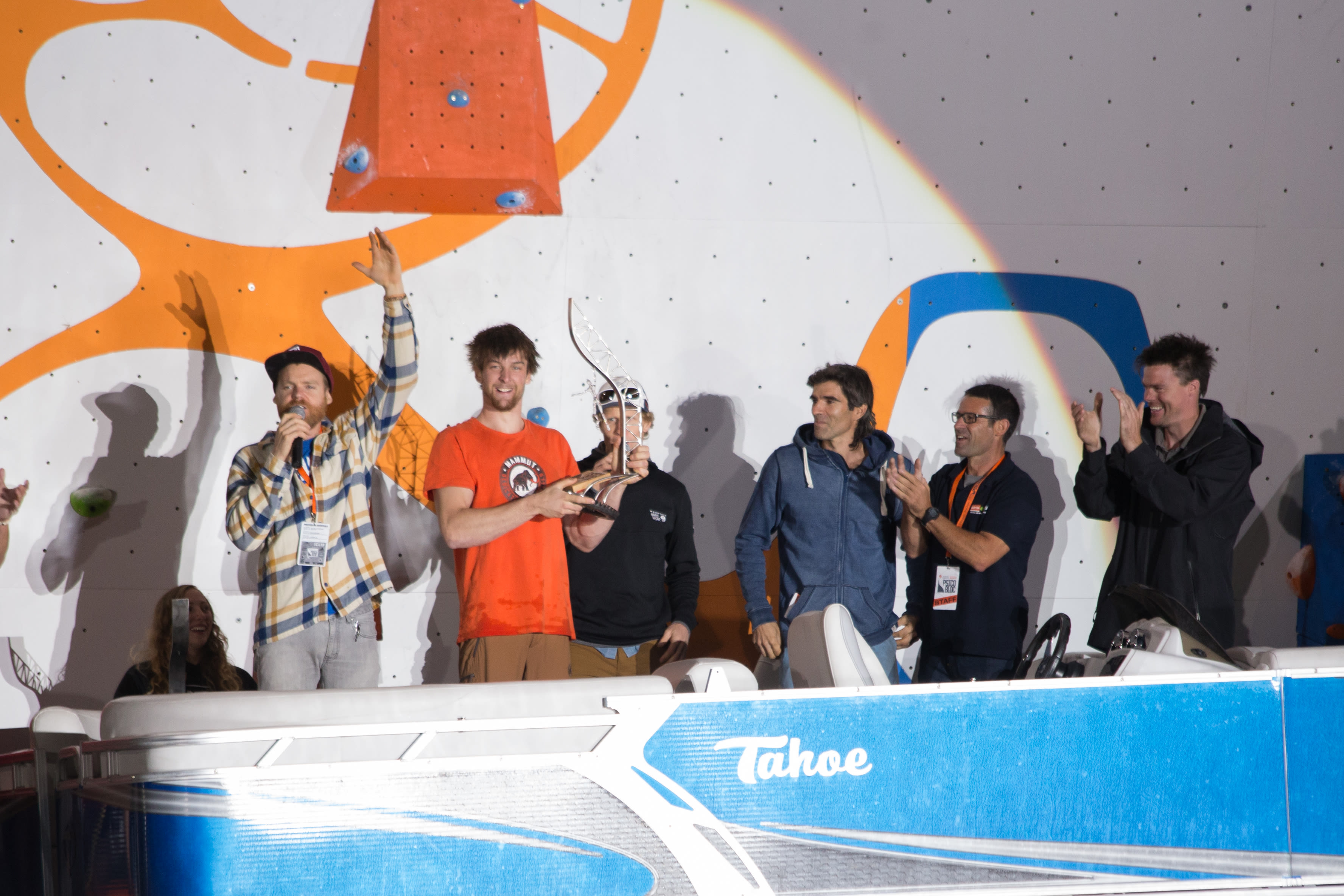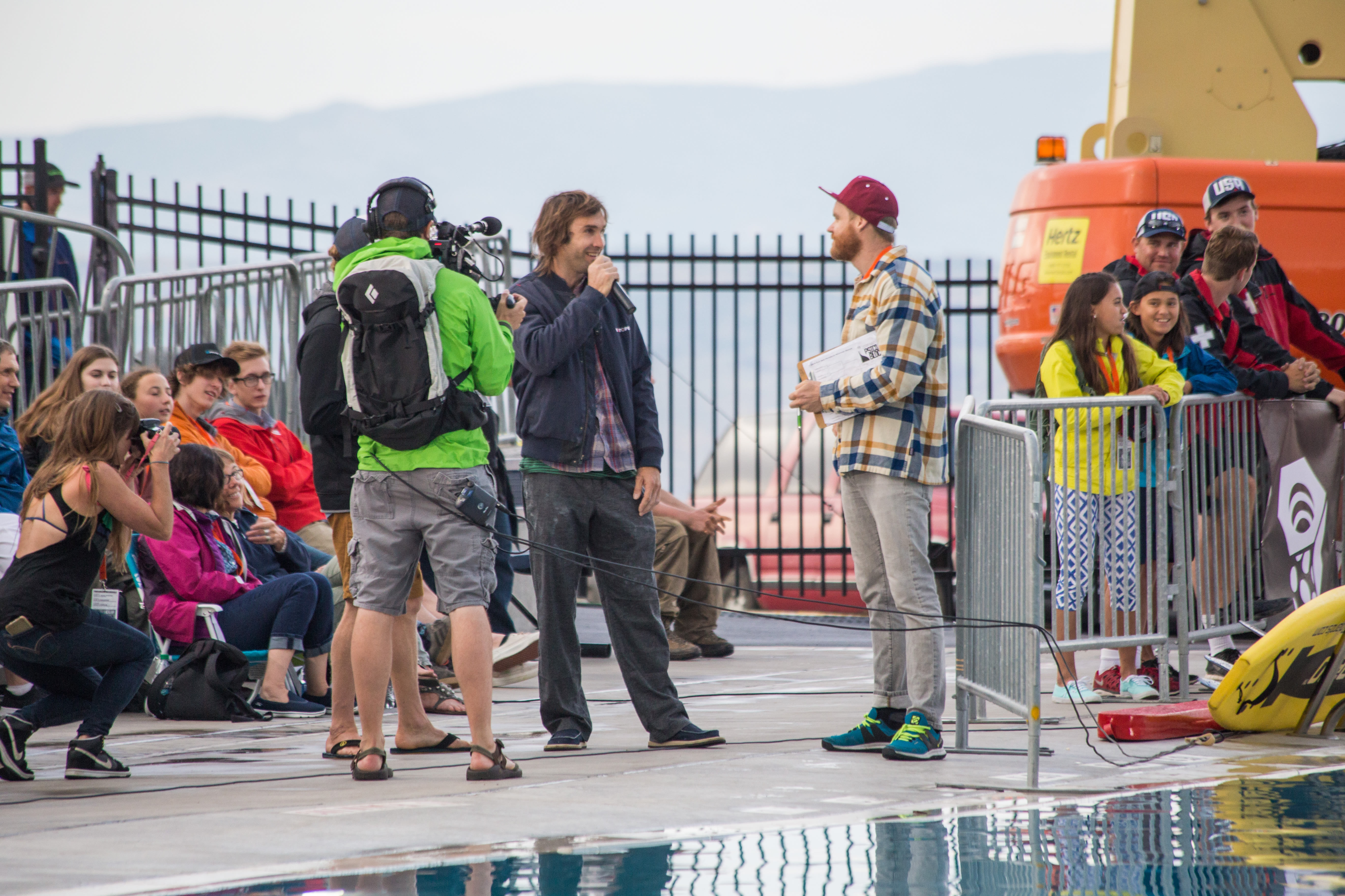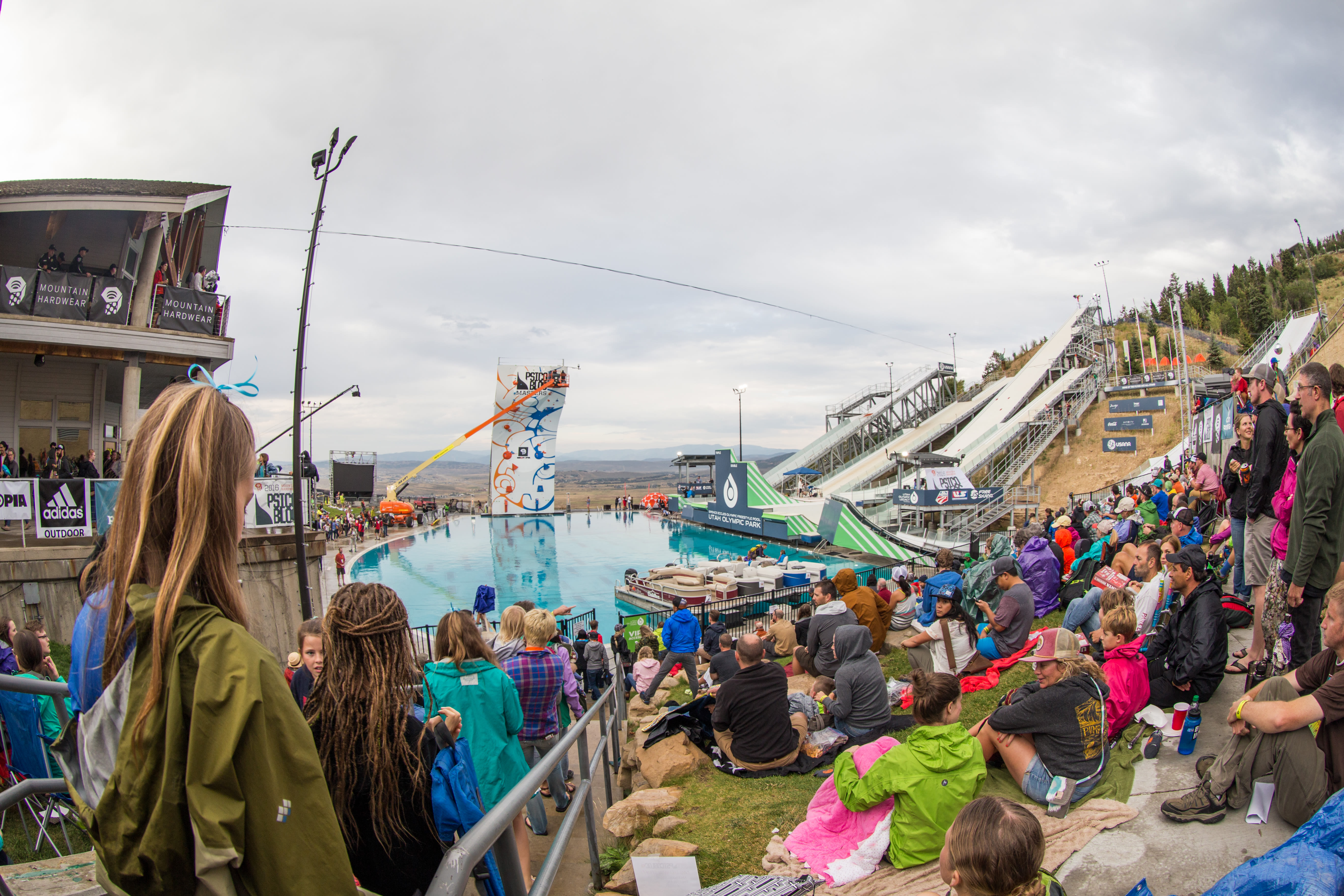 The weather started out a bit rainy, but soon turned into a brilliant Park City evening as the Psicobloc Masters climbing competition got under way. Sixteen world-class climbers from fought for a $20,000 prize in a race to the top of the 55-ft wall erected at the pool of Utah Olympic Park. The brainchild of renowned deep water solo climber Chris Sharma, Psicobloc pushes climbers and the sport to new levels. In the end, Michaela Kiersch of Chicago edged out the other ladies to claim the top prize while Germany's Jan Hoyer (who also took first at Psicobloc Milan) won by a hand against local Nathaniel Coleman.