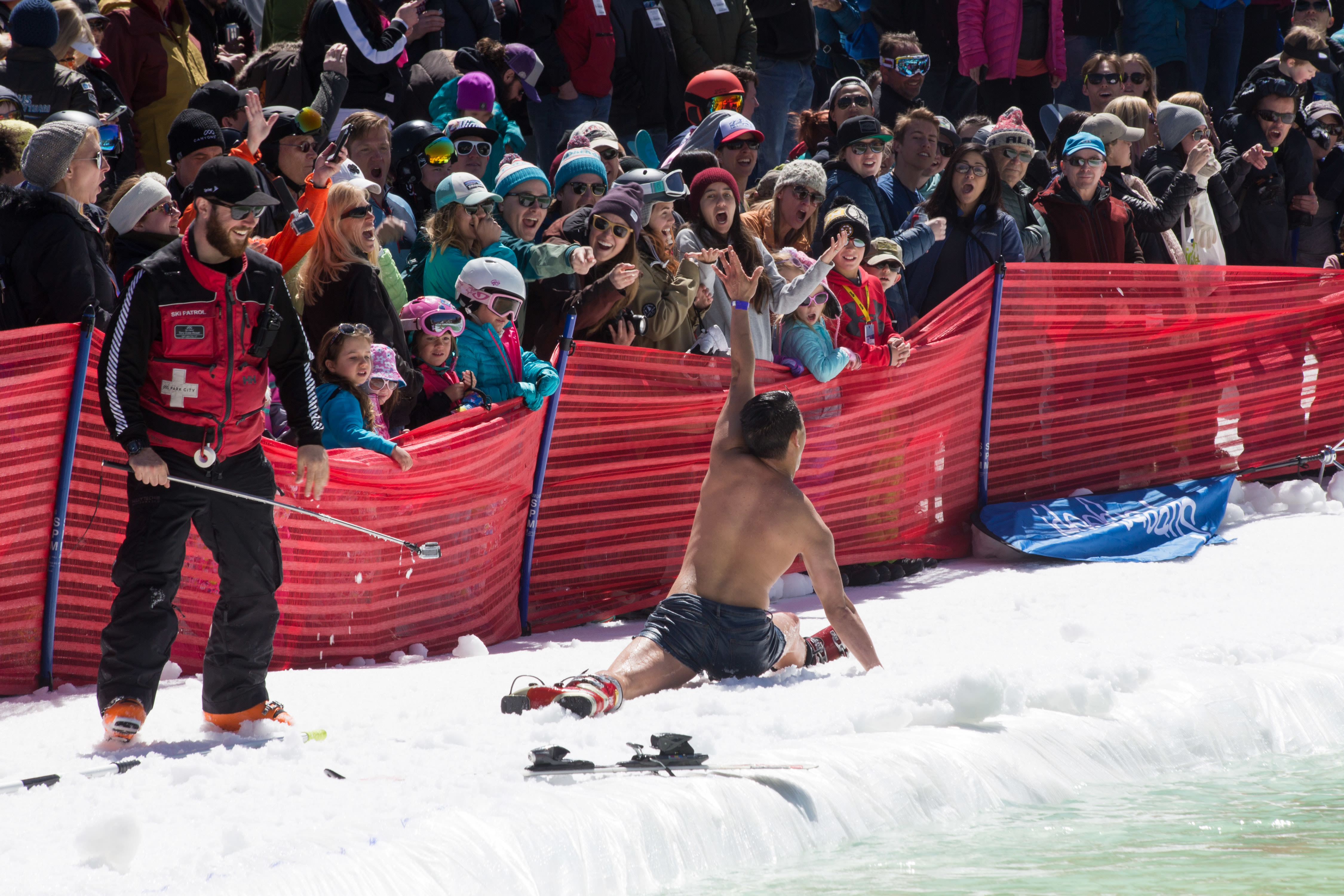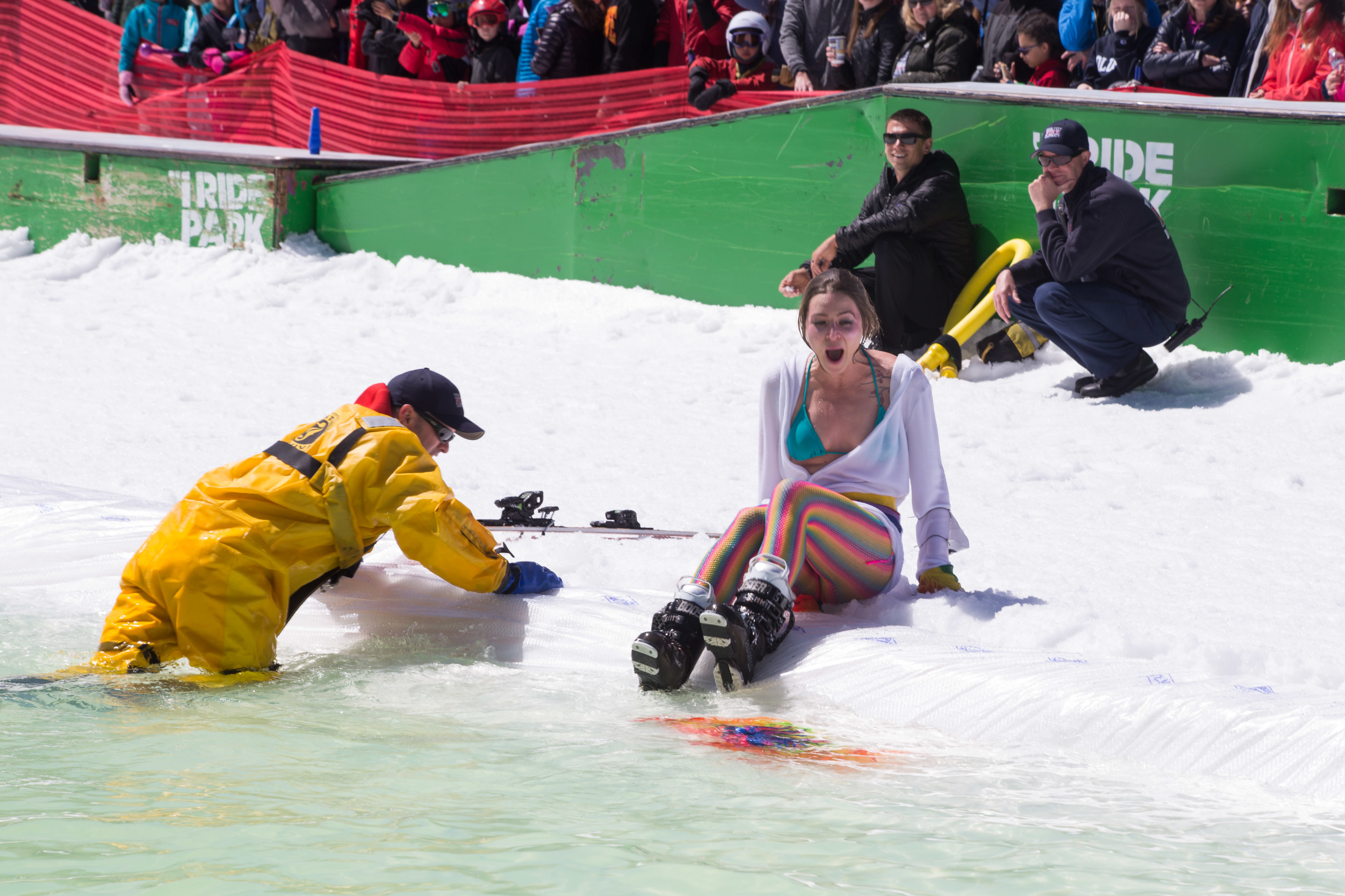 Closing day at Park City Mountain Resort always comes with its share of shenanigans. The slopes are sparse, tourists few and far in between, meaning it's the time for locals to come out and play. Snowy conditions saw the annual pond skimming competition rescheduled for the final weekend. The 2017 Pond Skimming Competition came in two installments on April 15 & 16 with a big crowd turning out to catch the delightful costumes and even better splashes from contestants daring enough to attempt to skim across the 30-degree pond. One of the highlights was, undoubtedly the topical United Airlines team, featuring three crew members beating up on a doctor.