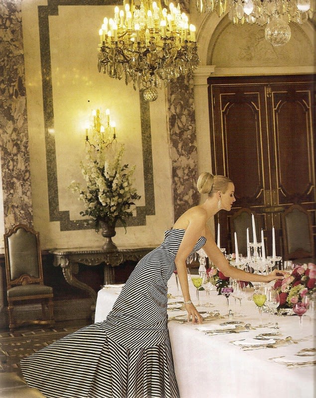 I came across these gorgeous photos of the bride-to-be snapped at the royal palace in the pages of HOLA! (my fave mag from Spain!). Though the gowns she is photographed in aren't wedding dresses, I have to wonder if she will choose a similar silhoutte or style as one of these beauties for her big day. (How fab would the black-and-white striped Ralph Lauren gown be for a bride? Swoon!)