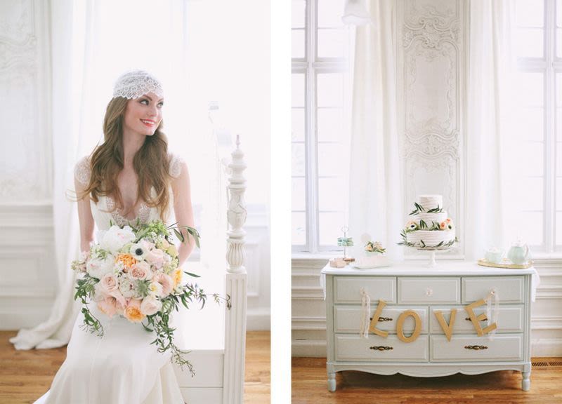 Pastels are always popular for weddings, but blush, peach, and mint are having their moment in the spotlight. (Just look at Pinterest for proof!) Michelle Cousins of Michelle Leo Events and Jacque Erickson of Jacque Lynn Photography were inspired by the trio of sweet sorbet shades when designing this styled shoot at Le Chateau at La Caille. (You may have seen some of the photos here.) The shoot is dripping with pretty inspiration for spring and summer weddings!