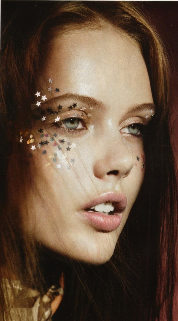 Images: 1 wedding dress + stars // 2 tablescape + model // 3 chignon // 4 washi tape + model // 5 dress + wallpaper // 6 makeup // 7 blouse + chandelier // 8 confetti + model