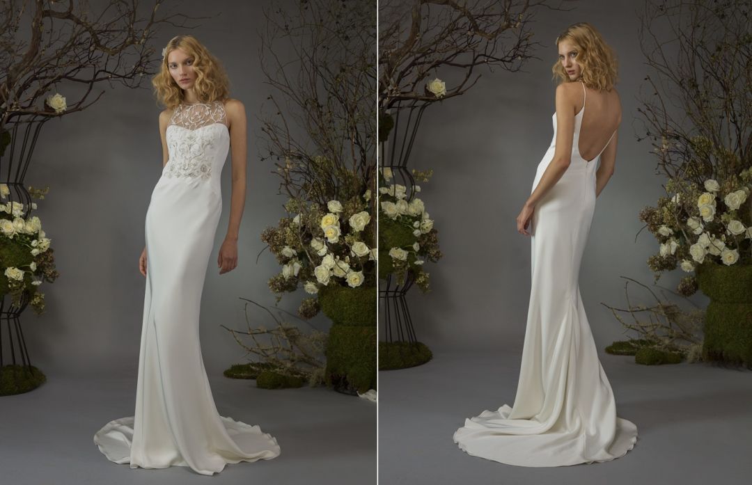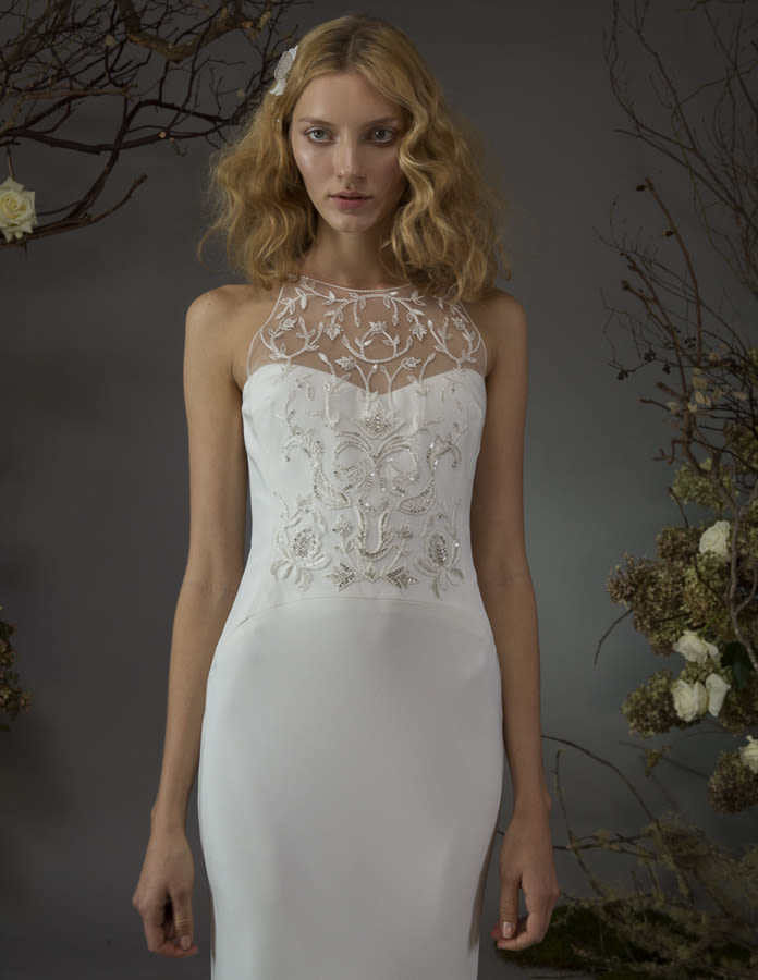 If you're a fan of satin sheaths, bias cuts, and sexy backs, then Elizabeth Fillmore is the bridal designer for you. Season after season, Fillmore turns out quietly glamorous wedding gowns. There are no elaborate ball gowns or overly trendy designs in her Fall 2014 bridal collection—just elegant, body-skimming dresses sprinkled with gorgeous details, from appliqué blooms to intricate beading.