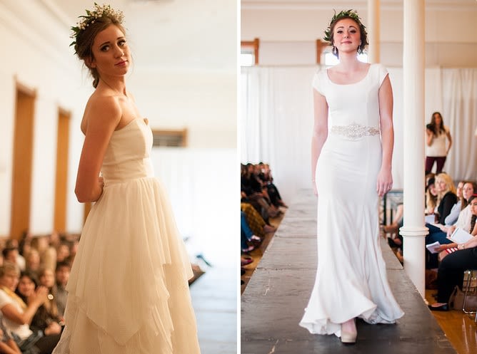 Gown by Chantel Lauren Designs (left); Gown by Janay Marie Designs (right) | Photos by Ryan Houston Photography