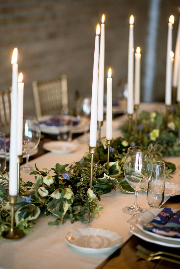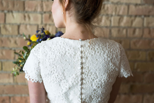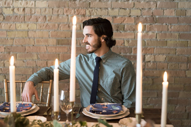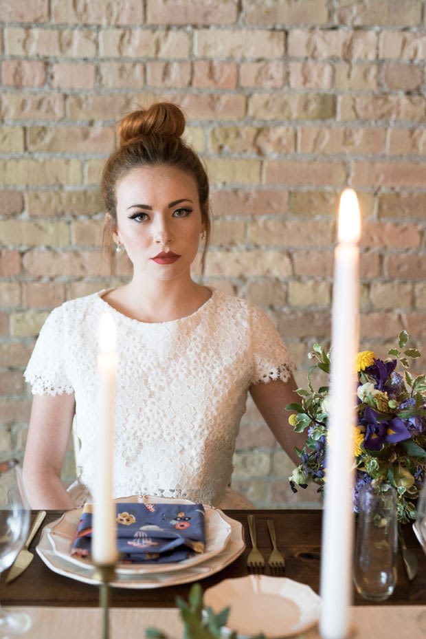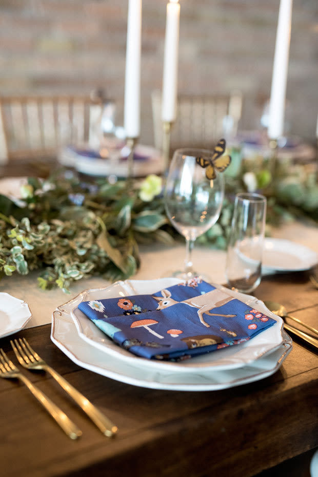Butterflies and wildflowers and foliage, oh my! A woodland-themed tablescape and retro-cool bridal fashion take center stage in this Whimsy Hipster styled shoot by FUSE Weddings & Events. There's no shortage of decor details to love: a verdant table runner, tall taper candles, patterned napkins, and gold flatware and Chiavari chairs to boot. We dig the overall vibe for a casual urban celebration or a backyard bash. The inspiration for this playful spread? A short and sweet lace frock by Utah Fashion Week designer Illume Gowns. See the full shebang below, and scroll down for a list of local vendors.