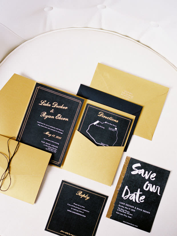 NAMES Luke Decker and Ryan Eborn LIVE IN East Sugarhouse OCCUPATIONS Luke is the owner/stylist at Lunatic Fringe Salon in Holladay; Ryan is a real estate agent for Urban Utah Homes. WHEN THEY MET A decade ago at a party with mutual friends, but it wasn’t until three years ago that they saw each other in a new light and they’ve been inseparable ever since. HOW HE PROPOSED After the Kitchen v. Herbert case was resolved, the landmark case that successfully challenged Utah’s constitutional ban on same-sex marriage, they flew to NYC for a weekend getaway. Ryan proposed to Luke in Central Park, and then they walked across 5th Avenue to Cartier to buy rings. WEDDING TIME 6 p.m. NUMBER OF GUESTS 120 DÉCOR DETAILS Mixed metallic hues and accents, including sequined linens and sparkling formal gowns for the bridal party; because there was no bride to outshine, they wanted the women to stand out. HOW THEY MADE THE DAY THEIR OWN They walked down the aisle together holding hands, and they eliminated “sides” at the ceremony in favor of having everyone stand together in a circle. RECEPTION MENU Heavy tapas-style appetizers: beef short-rib sliders with aioli and arugula, spicy pork pot stickers with Asian curry street noodles, wild mushroom risotto, petite chicken cordon bleu with raspberry chutney, bacon-wrapped scallops, Asian meatballs with udon noodles and sweet chili sauce, and petite quesadillas with tomatillo salsa. CAKE Three tiers of red velvet covered in white fondant, brushed with edible metallic hues, and topped with custom bobble-head dolls of the grooms FAVORITE RECEPTION MOMENT The toasts; everyone spoke beautifully and there wasn’t a dry eye anywhere. FIRST DANCE “How Long Will I Love You” by Ellie Goulding THE DAY IN THREE WORDS Inspiring, breathtaking, grateful HONEYMOON Cancun, Mexico